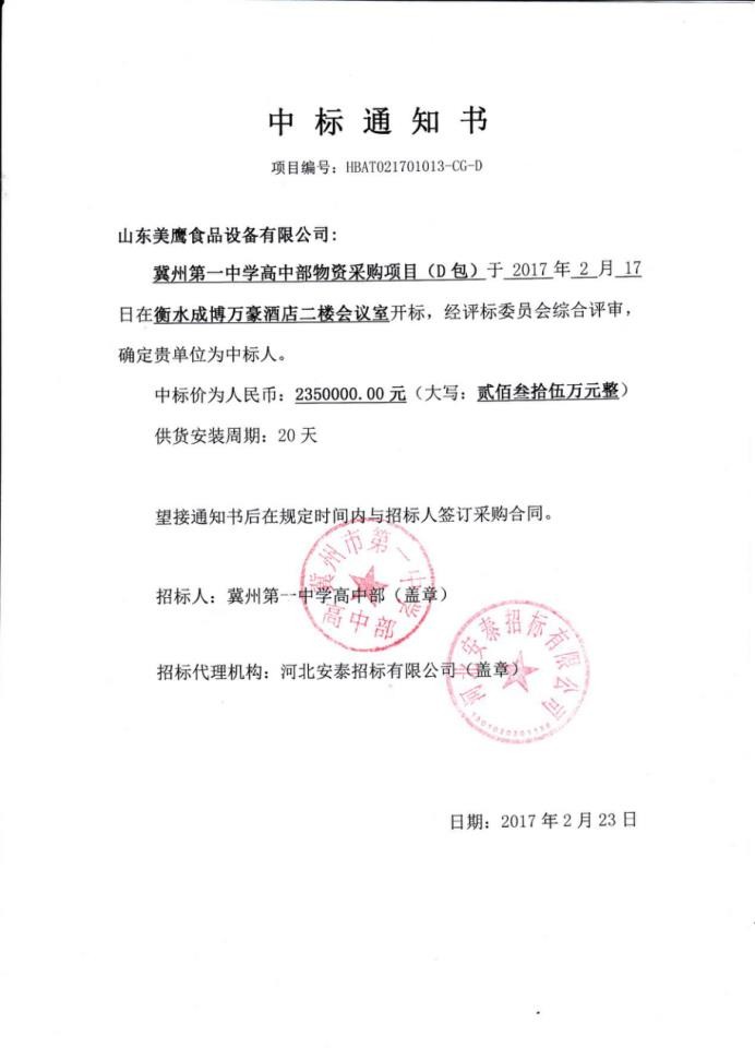 冀州第一中學(xué)高中部物資采購項(xiàng)目