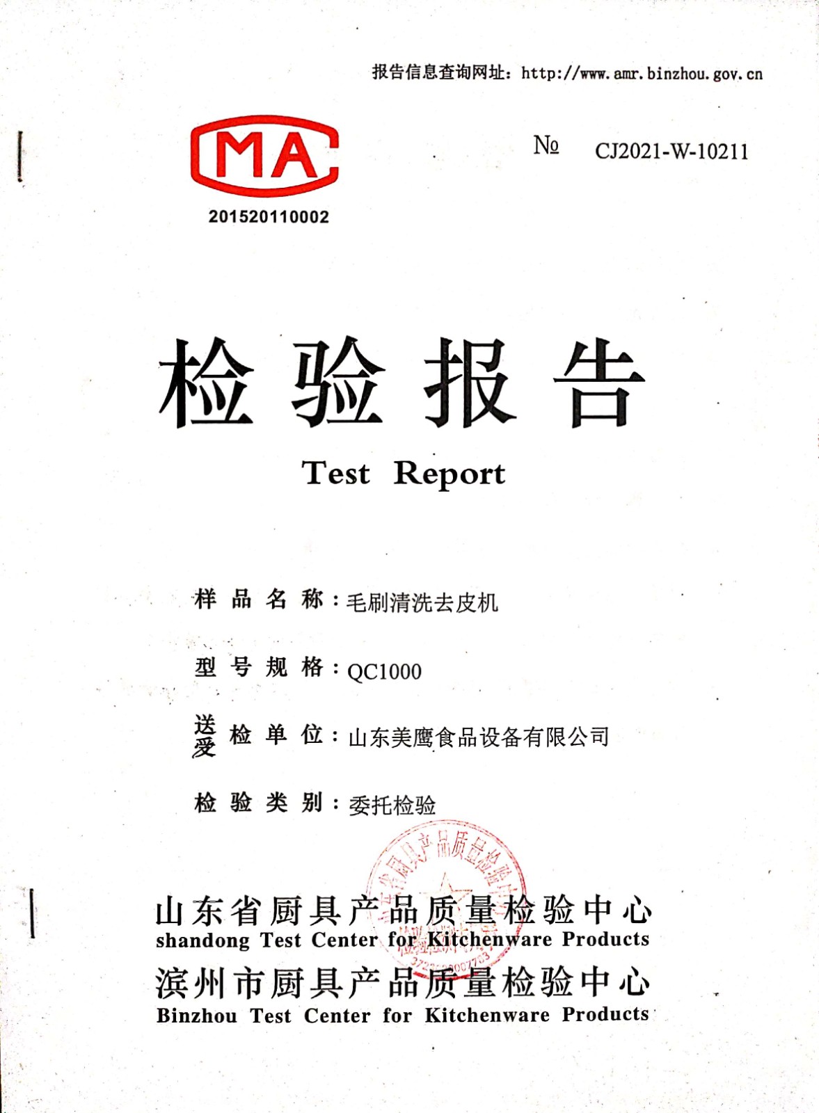 毛刷清洗去皮機檢測報告
