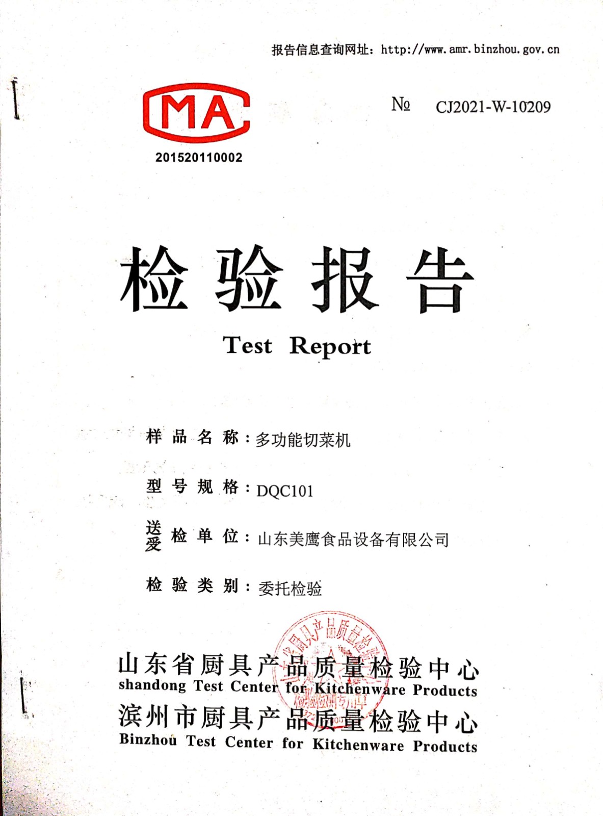 多功能切菜機檢測報告