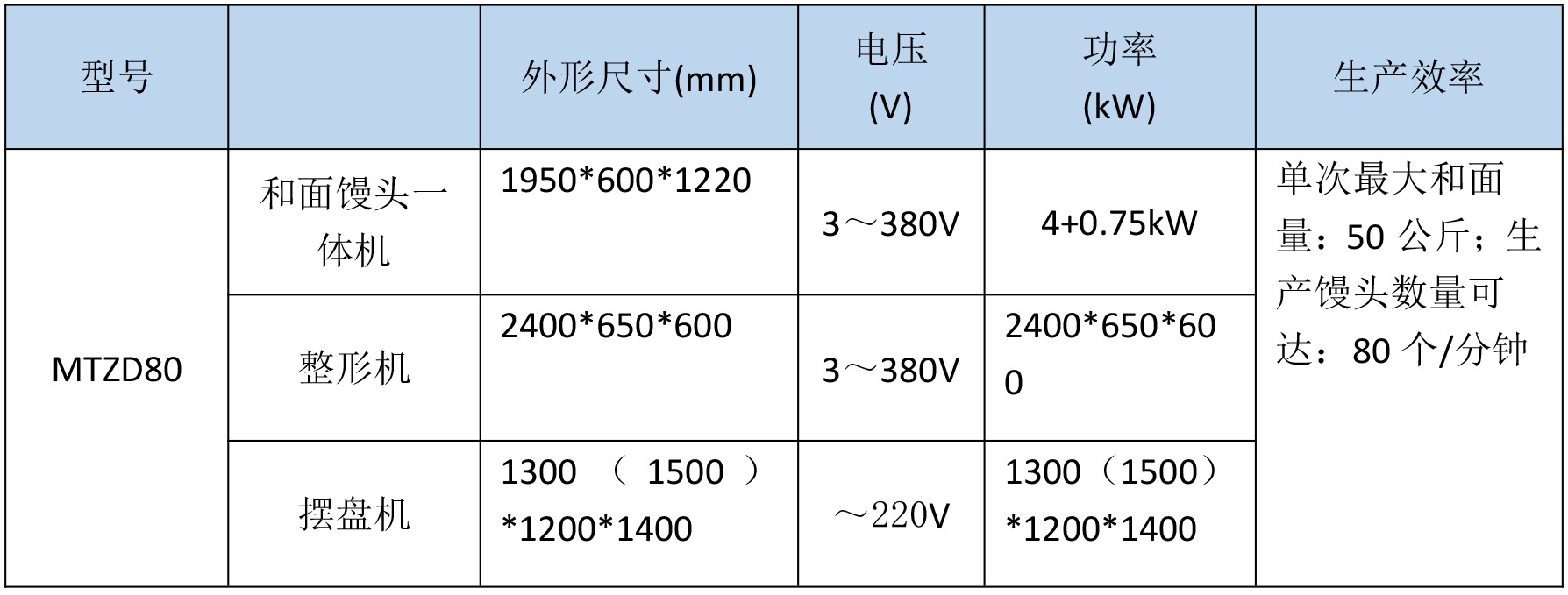 MTZD80型饅頭流水線是我公司為大型食堂和配餐中心設(shè)計(jì)制造的自動(dòng)化饅頭加工設(shè)備,包含了和面饅頭一體機(jī)、整形輸送機(jī)和自動(dòng)擺盤機(jī)三個(gè)部分,也可拆分開單獨(dú)使用其中的任意一臺(tái)單體