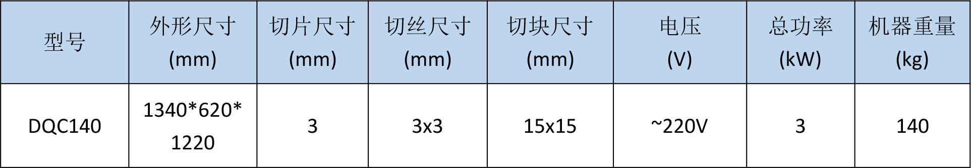 DQC140三變頻多用切菜機主要由機架,葉菜類切斷部分,根莖類切制部分,變頻器,,輸送帶,電動機,護罩等組成。